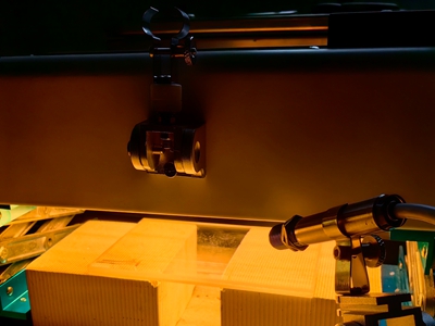 利用線型聚焦加熱器的高光強(qiáng)密度,低能耗,穿透力強(qiáng),控制簡單等特點(diǎn),通過上方布置加熱器,可快速將碳纖維線加熱到所需溫度。